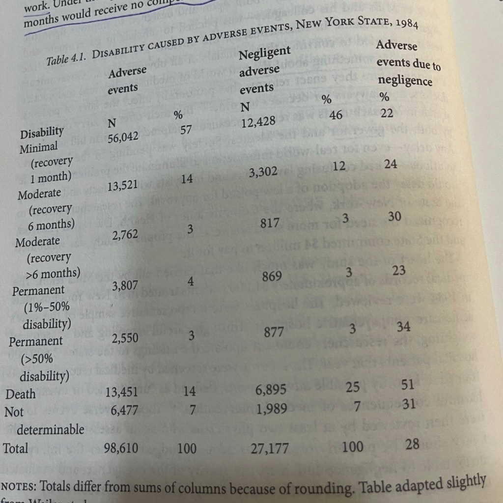 عند قراءتي لكتاب Medical malpractice litigation وجدته مليئاً بالرسوم البيانية والإحصائيات الطبية، التي تتناول الأخطاء الطبية في مختلف الولايات، ووجدت مستوى النقد فيه يتجاوز توقعاتي، ووجدت التوصيات التي تبنى على هذه الإحصائيات والأرقام وليس على التنظير والآراء المرسلة.